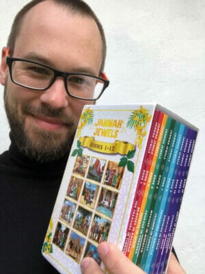 The exterior of each gift box is a high quality full-colour slip-case printed on gloss media. This box set contains all 12 of the Award-Winning Jannah Jewels Adventure Series!